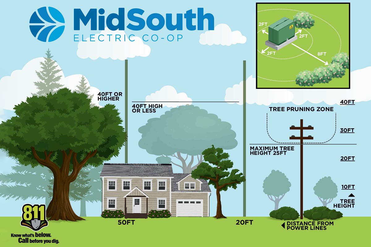 Spring is a time of growth and new beginnings, and for many MidSouth Electric Cooperative members, that means planting trees, flowers and other elements to enhance landscaping. While planning spring planting projects, keep safety in mind—especially when working near electrical equipment.