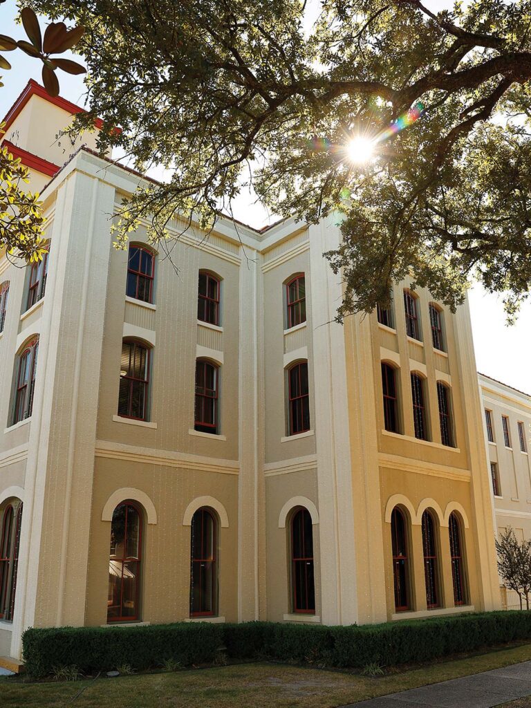 She said the courthouse’s historic red concrete floors were saved and sealed after removing old glue and mastic. The courthouse lettering was repainted in gold—a nod to its original gold-leaf finish. Cornices, capstones and balustrades were cleaned, repainted and coated with protective mineral finishes and outdated flag poles were removed to align with preservation goals.