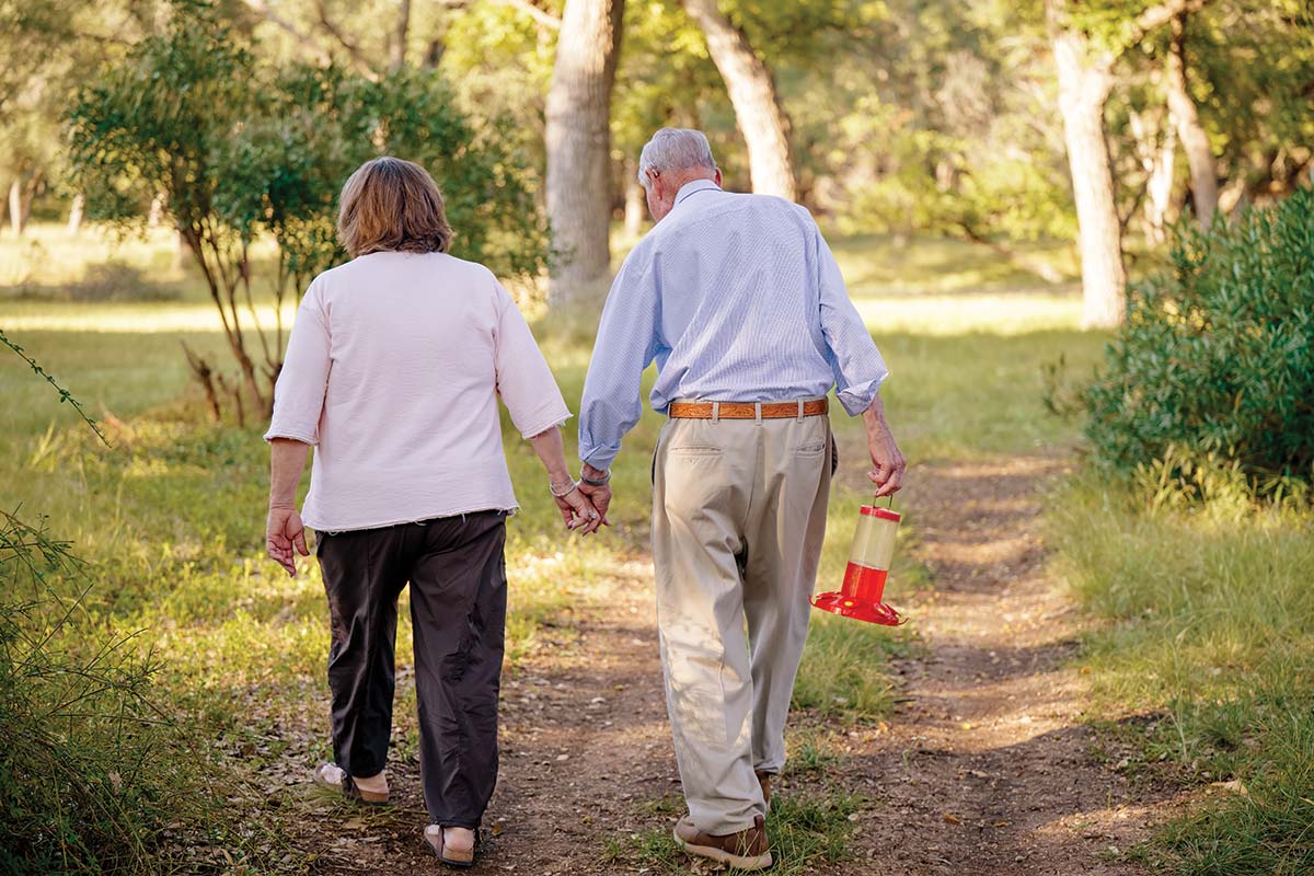 The Browns get up from their chairs in the observation room and head off to refill sugar water feeders. “It’s like having a dairy farm,” Cathy says. “You make the circles in the morning and fill what’s empty. Then in the evening, you do it all again.”