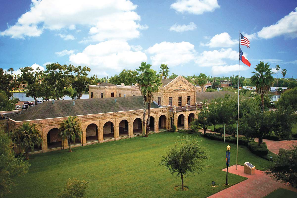 Fort Brown evolved from a star-shaped earthen fort to a commanding presence after the Civil War, when 70 buildings were erected of locally made border brick. With wide arches fronting shaded breezeways, Fort Brown’s 1869 hospital (said to be the most beautiful hospital in the Army) was of crucial importance during epidemics of yellow fever and cholera as the only hospital in Cameron County until 1909.