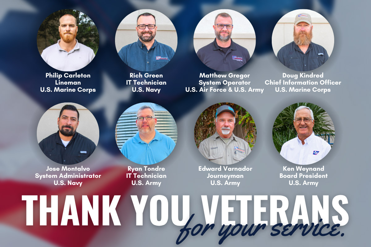 At Medina Electric Cooperative, we’re among the more than 900 electric co-ops across the country that support and honor our nation’s veterans of all generations. We’re grateful to have vets within our ranks, see those at Medina EC above, and we’re proud to serve veterans and their families within our community.