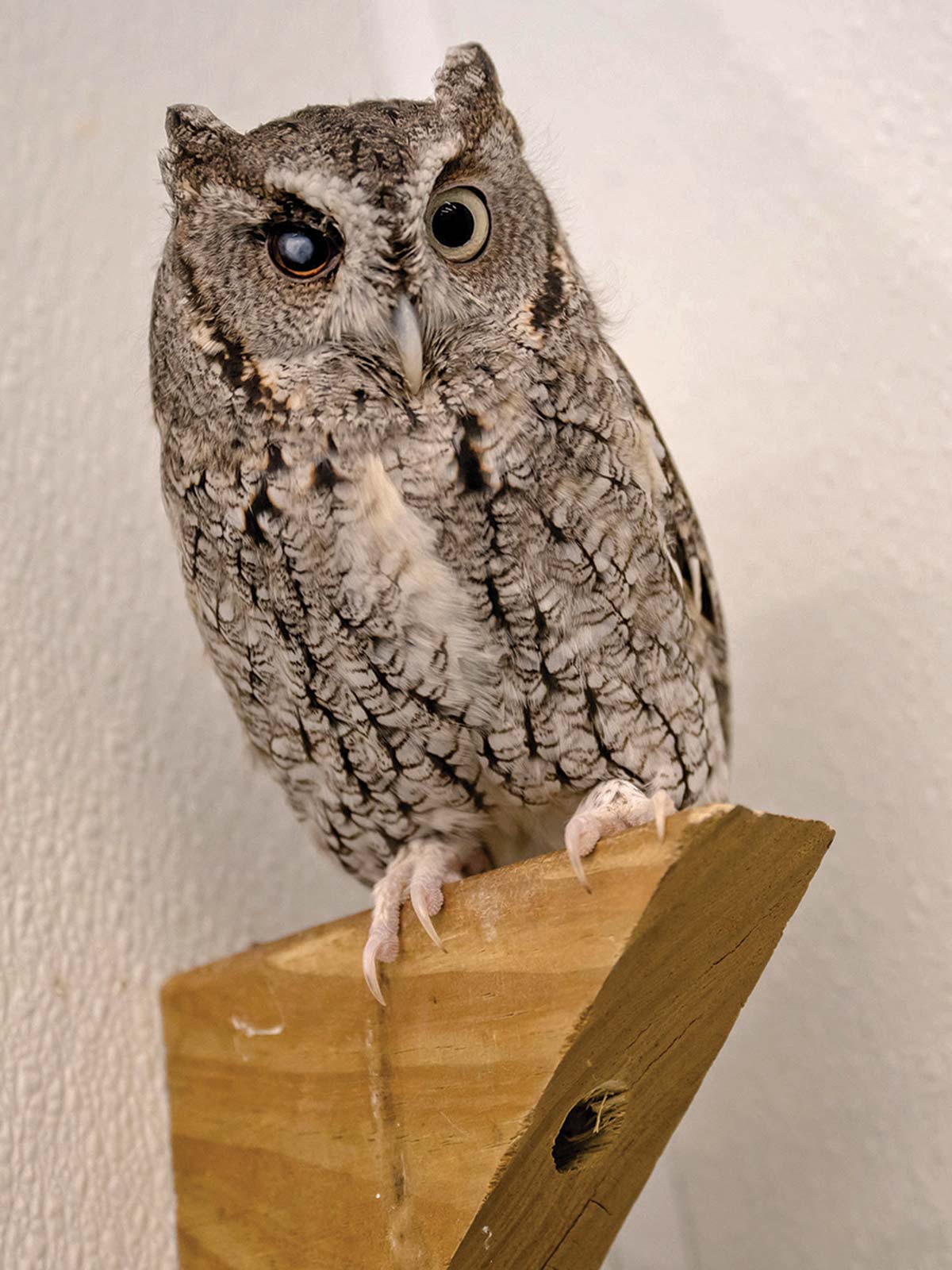 Captain Jack, an Eastern screech owl, is a permanent resident at Wild West Wildlife Rehabilitation Center in Amarillo. He can’t be released into the wild because of his limited vision.