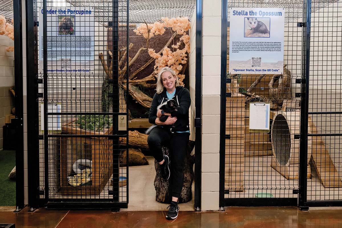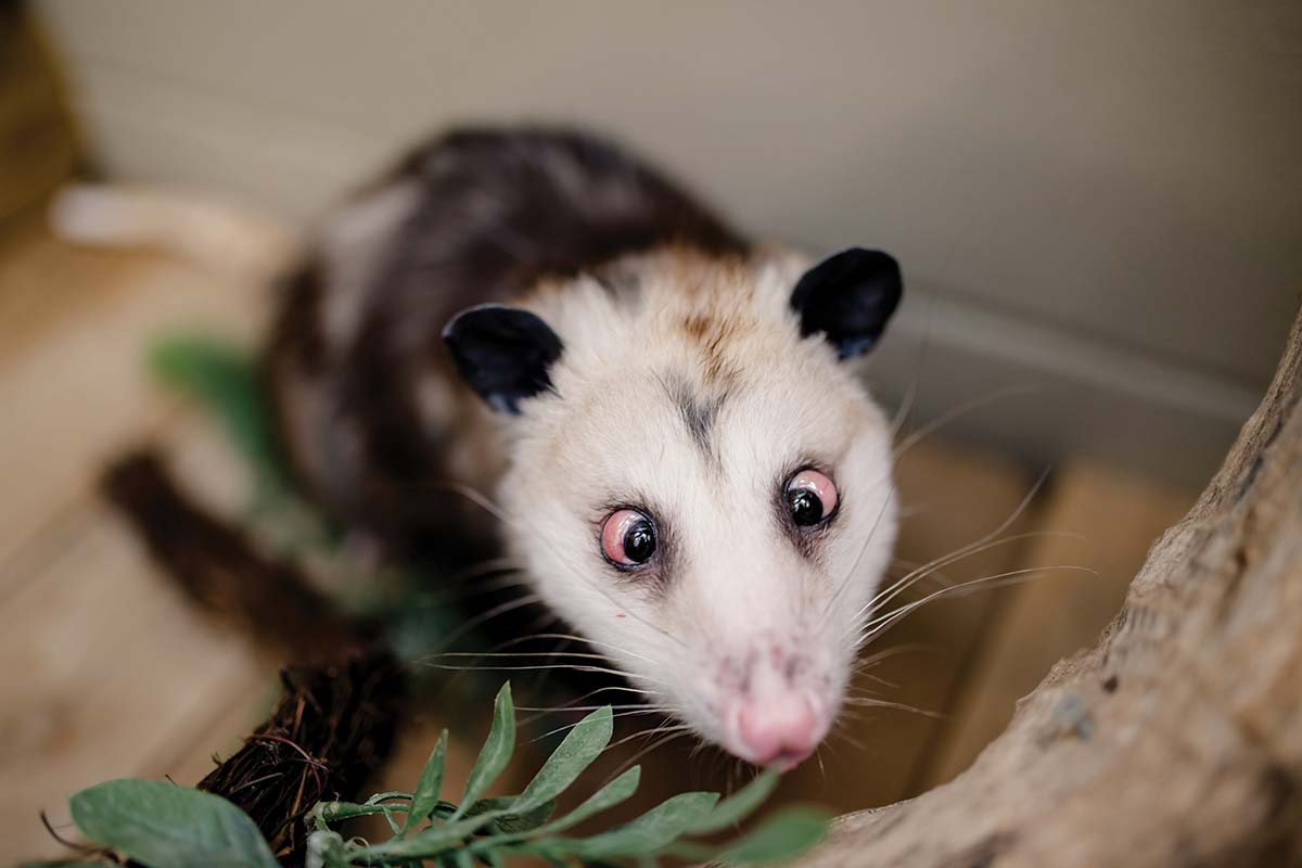 Stella, another ambassador, is a Virginia opossum raised by humans.