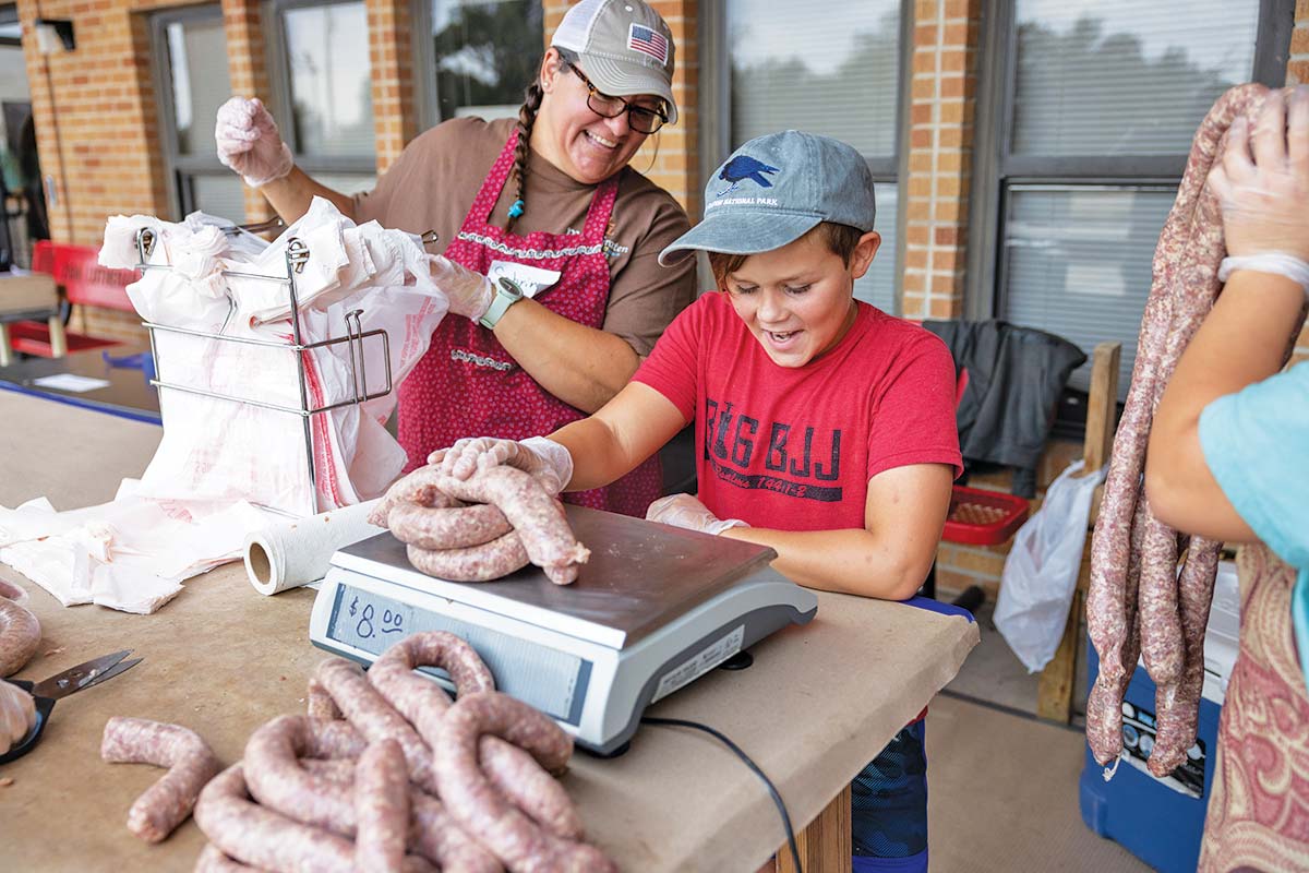 Several days before the event, organizers buy thousands of pounds of pork and beef, plus 100 pounds of black pepper, and 300 pounds of salt. They start making the sausage early Saturday, then smoke it overnight. Sunday, they prepare side dishes and sell some of the uncooked links by the pound.