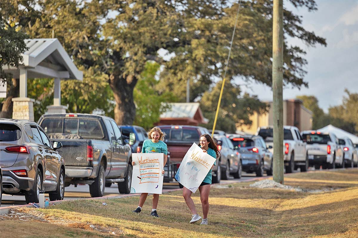 “I put some in the freezer and use it for the whole year,” says Nina Frias of Jarrell, who has come with her mother to pick up food. “It’s hometown, it’s sausage—and oh, it’s magnificent.”