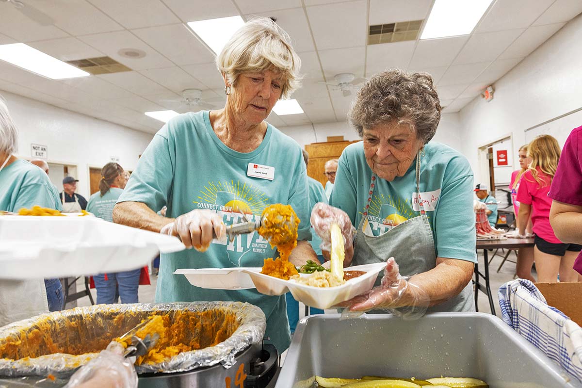 That first year, a transformer blew out, and church members had to call the electric company. “Everybody stayed, and we kept on with the meal,” Mickan says. Another year, torrential rains forced organizers to move the parking area down the road, where it wasn’t so muddy.