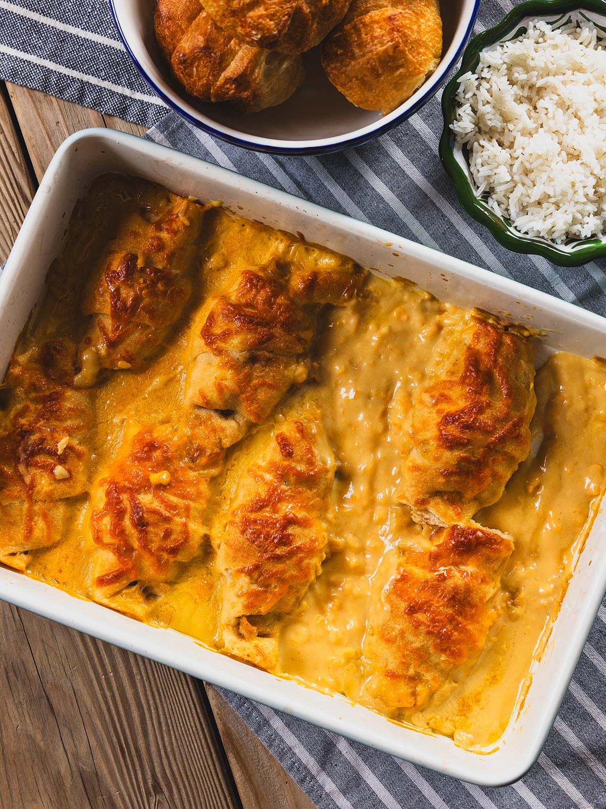This recipe was given to Kirkpatrick 30 years ago by a dear friend and has remained a family favorite. I see why Birds has stood the test of time in her household. Buttery crescents filled with chicken and swimming in a cream sauce hit all the comfort food notes. Kirkpatrick likes to serve the birds over steamed rice.