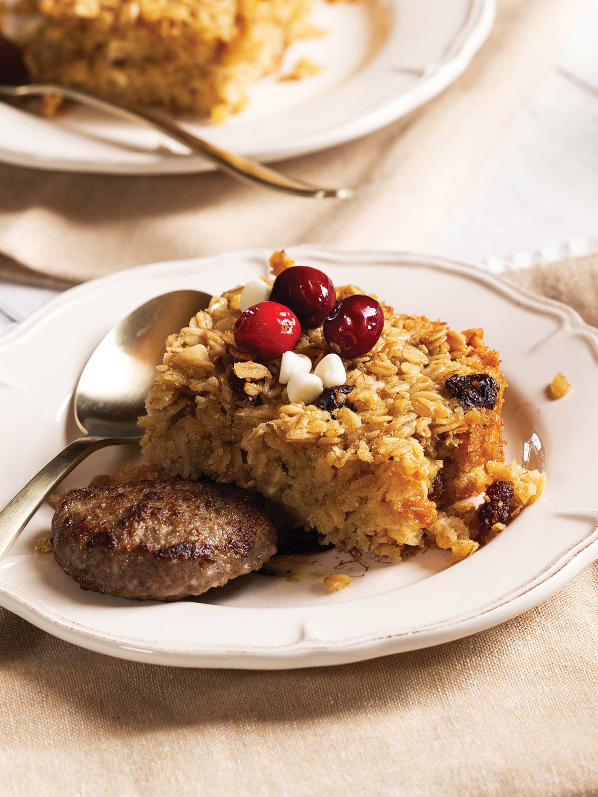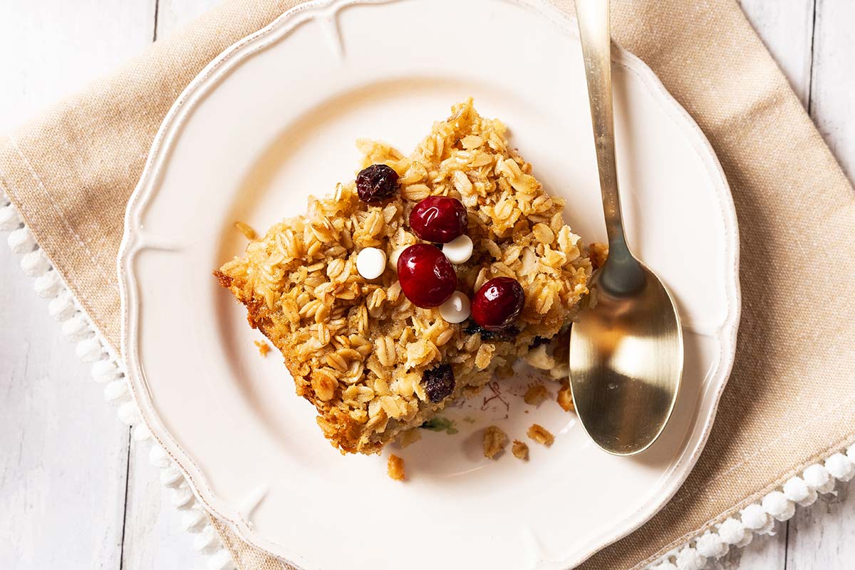 Looking for a cozy Christmas breakfast to feed a crowd? This is it. Imagine a holiday buffet table filled with baked oatmeal, bacon, sausage, scrambled eggs and fruit. And invite me because I would drive for hours for this baked oatmeal. The oatmeal can be prepped the day before, refrigerated overnight and baked the next morning.