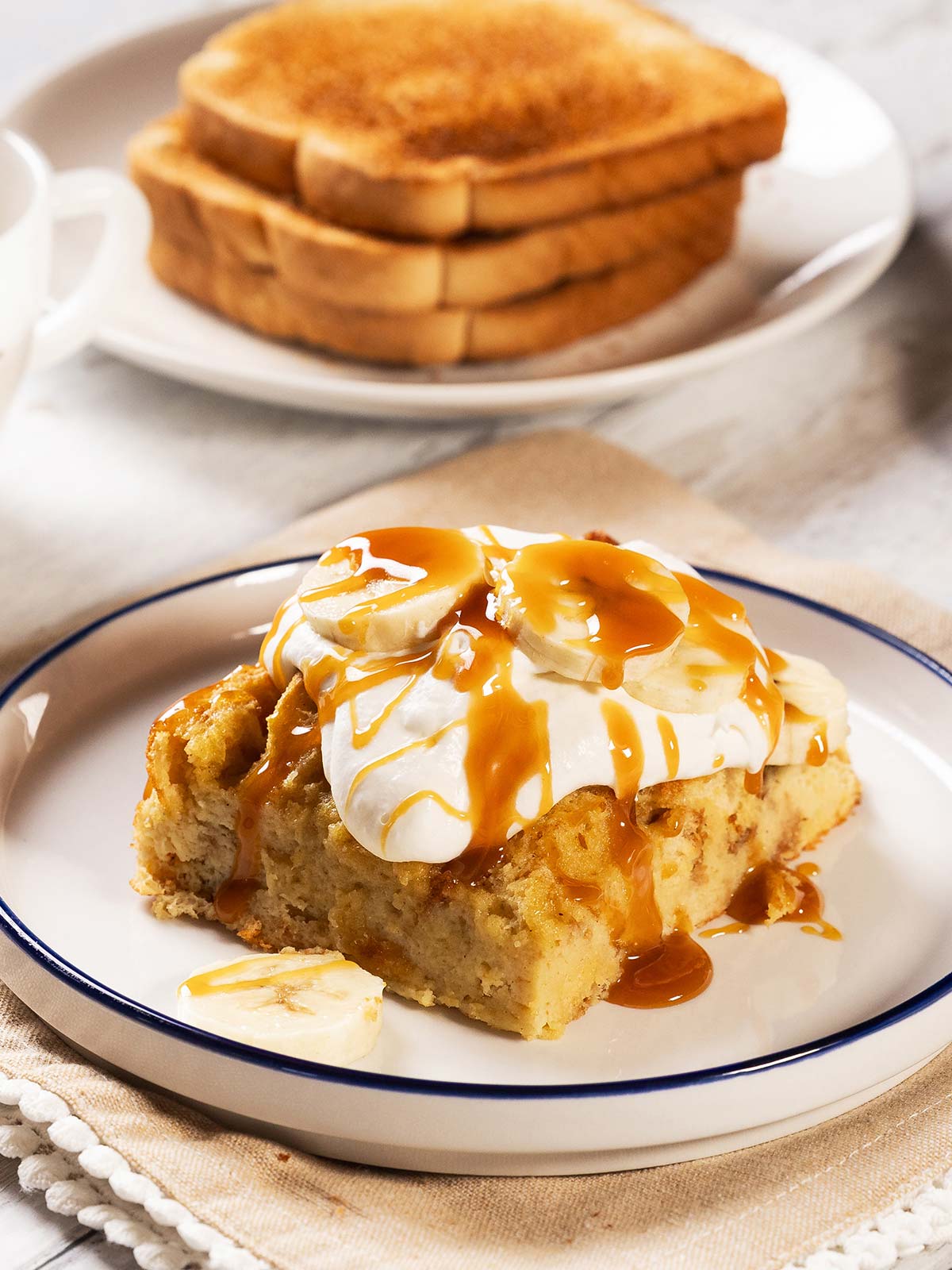 French Toast Bake With Caramel Banana Cream Topping