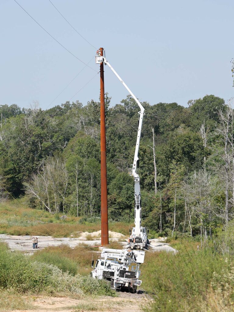 “During a voltage conversion, we double voltage [on the line], so the load current gets cut in half,” Brister said. “We can use a smaller distribution line at higher voltage because there’s less current. The much more expensive alternative would be to do a reconductoring project where we install larger distribution lines.”