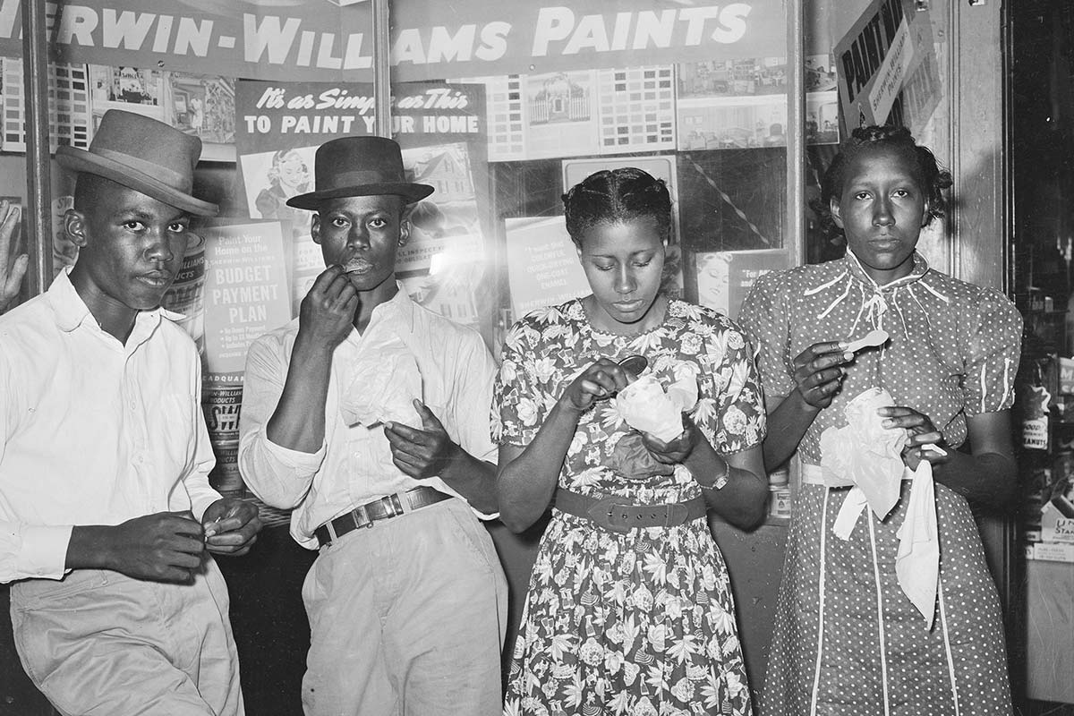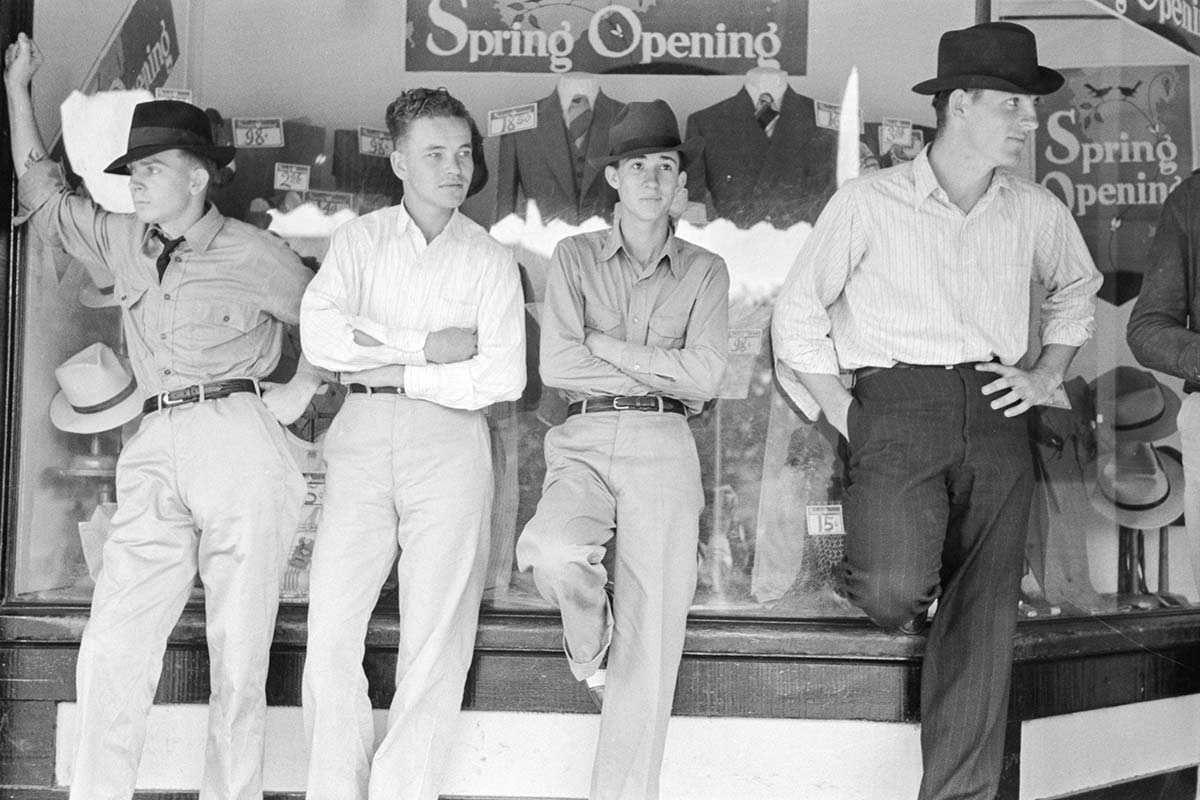 Barefoot kids chased each other around the dirt streets and side lots as old men sat on wooden benches and observed all the goings-on. Eyeing each other were small groups of young people—a foursome eating ice cream on the raised sidewalk, another group leaning on a display window lined with stylish suits and hats. A long line of teens, more intent on each other than the movie posters or the bustling activity surrounding them, packed the entrance to the Augus movie theater.