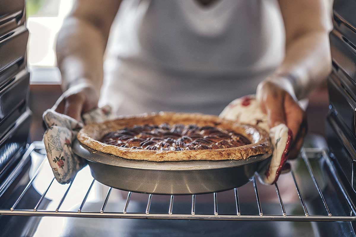 Turn the oven off a few minutes before the recipe’s end time and allow the residual heat to finish baking the dish. When using the stovetop, match the pan size to the burner to maximize efficiency. And remember: Your cookware matters. Ceramic, cast iron and glass hold heat better than metal pans, so they will cook food faster using less energy.