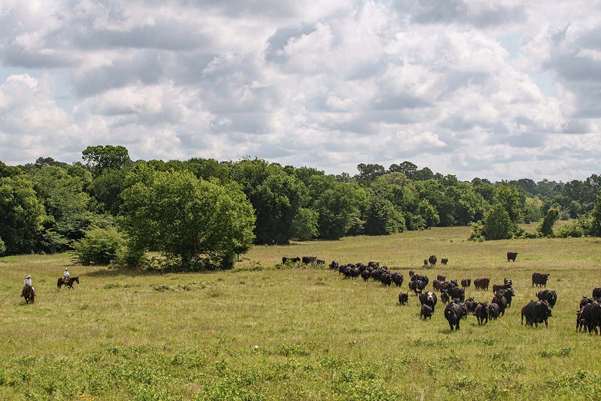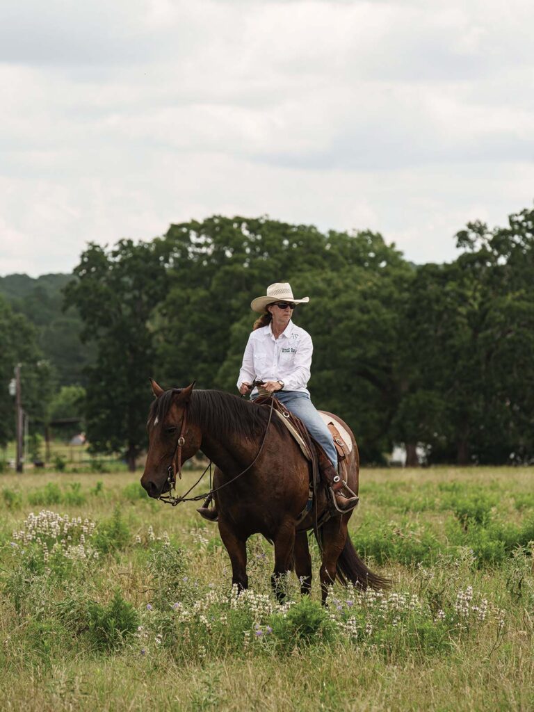 “[The previous owner] told me all about this land’s rich history—the Indian mounds and Alligator creek, how his father would gather cattle to ship to Houston. They didn’t want this [land] to be developed or subdivided,” Luther shares. He continues, topping the hill of the old Hoke place on horseback, looking down into the valley where the creek runs.