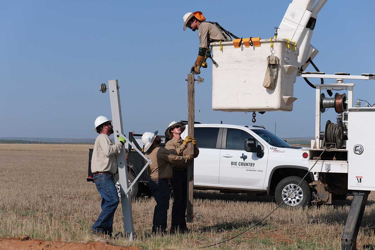Sometimes our team extends beyond the employees at Big Country EC to include some of our neighboring cooperatives. One of the Seven Cooperative Principles is Cooperation Among Cooperatives. Big Country EC experienced this principle firsthand in summer 2023. Three neighboring cooperatives—Concho Valley, Lyntegar and Taylor electric cooperatives—came to our aid when a storm damaged more than 200 poles.