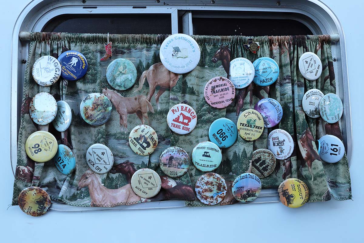 Trail riders participate in more than the Houston Livestock Show and Rodeo trail ride. Many collect buttons to show their participation in other rides.
