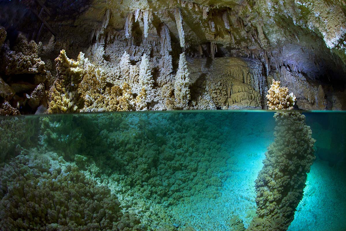 The Horseshoe Lake room sits beneath the dry, barren landscape of West Texas in the Caverns of Sonora, where the humidity is always about 98%.